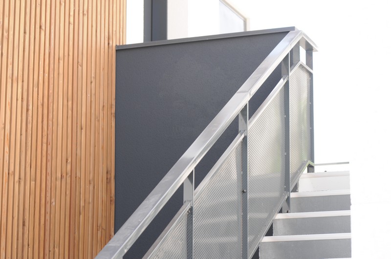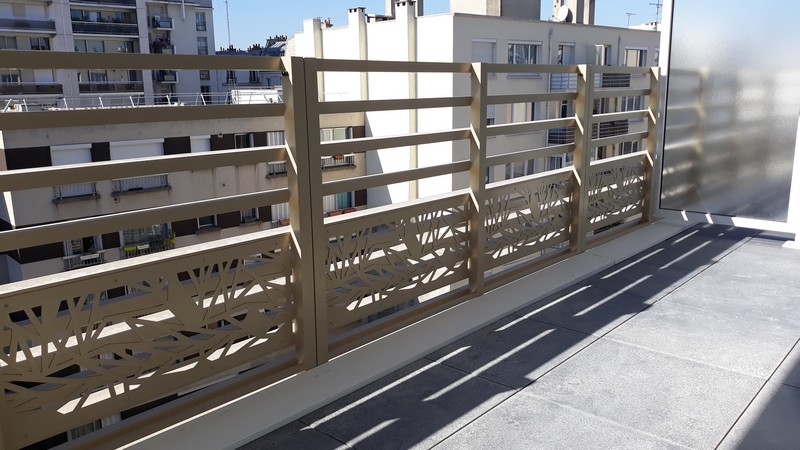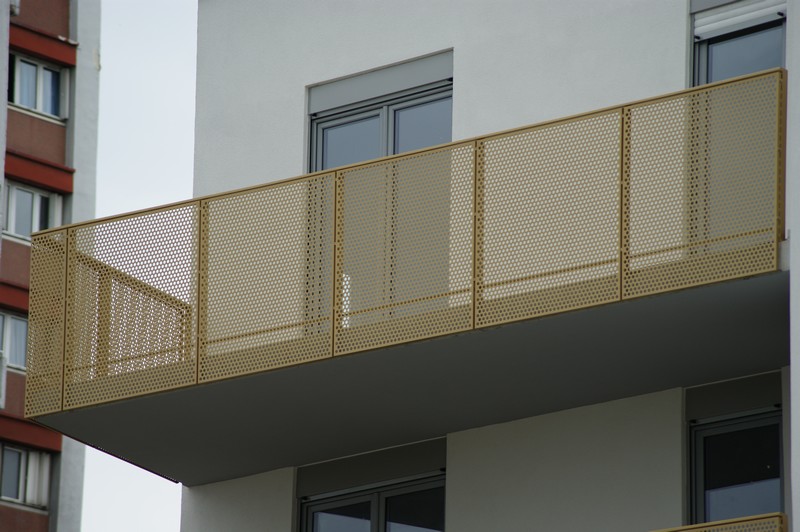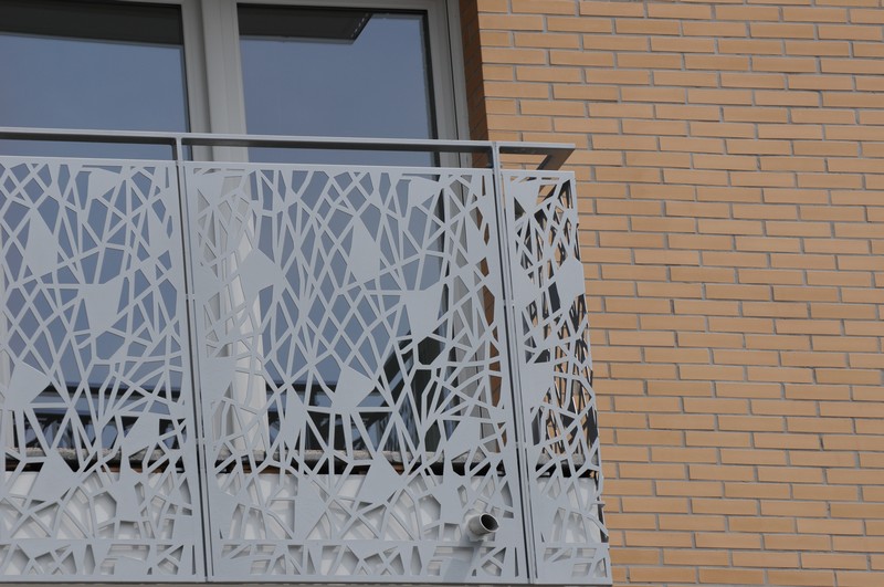 Moderne et design, le garde-corps à remplissage avec tôle acier ou aluminium est fabriqué sur mesure suivant les plans d’architectes. Le garde-corps personnalisé par la découpe laser donne à votre projet un style unique. Possibilité de motifs aléatoires, de remplissage ajouré ou de barreaudage filant type ferronnerie. La tôle perforée apportera un aspect plus industriel à votre façade et permettra de réduire le vis-à-vis. Pour un rendu sobre et discret, l’habillage en tôle pleine, lui occultera totalement le vis-à-vis. Le garde-corps tôlé, permet aussi l’habillage du nez de dalle.